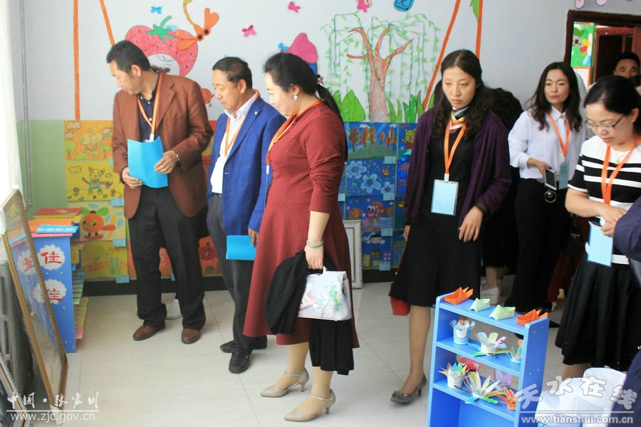 與會嘉賓參觀希望幼兒園美術(shù)展