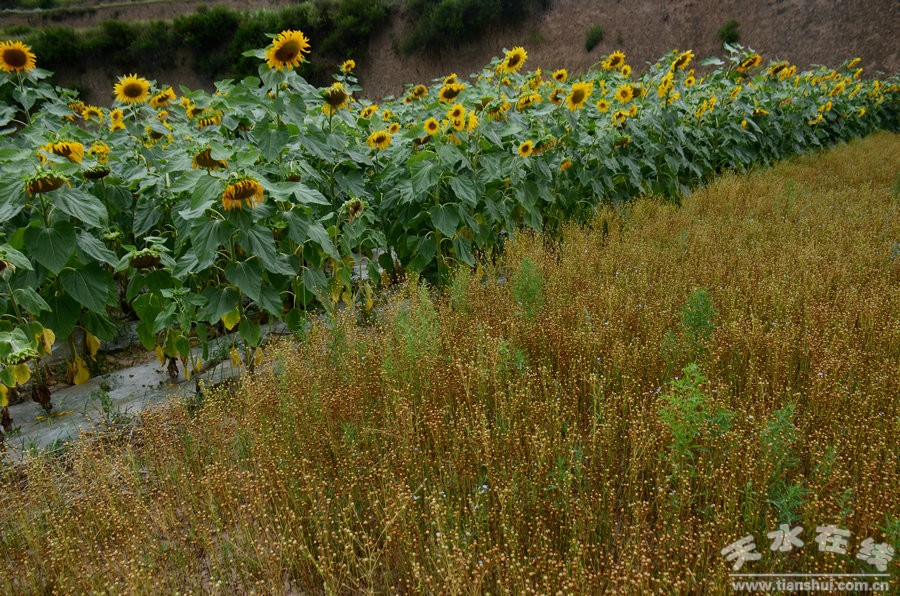 一場大雨過后的張家川鎮(zhèn)上川村顯得格外與眾不同,除了鄉(xiāng)村特有的安寧靜逸,位于縣城郊區(qū)的上川村別有一番景色。溝壑縱橫的田邊,“朵朵向日葵伸長著腦袋向太陽公公行著注目禮!
