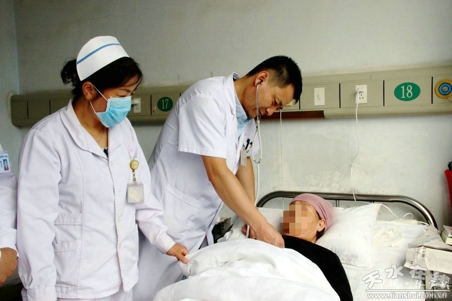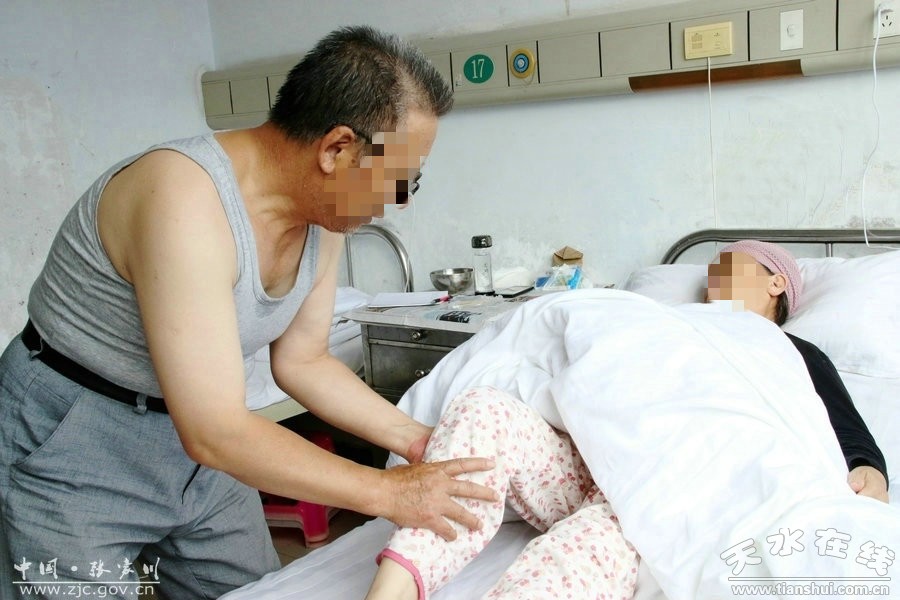 “手術(shù)做了才半個(gè)月時(shí)間,沒(méi)想到老伴兒現(xiàn)在已經(jīng)能自己翻身,并且腰部和腿上疼痛明顯緩解。手術(shù)前我們一家人做了最壞的打算,就算手術(shù)失敗,后半生癱瘓?jiān)诖惨惨,因(yàn)楫?dāng)時(shí)老伴兒被病痛折磨的實(shí)在看不下去了……”馬秀英的丈夫馬振科一邊抹著眼淚一邊訴說(shuō),“我們?nèi)胰藦男牡赘屑ぬm州來(lái)的溫大夫和我們縣醫(yī)院的劉鵬中大夫,還有手術(shù)后悉心照顧我老伴兒的護(hù)士,是他們解除了我老伴兒的病痛和我們一家人的‘病痛’,給了她第二次生命!”