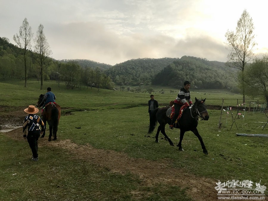 “五一”小長假,張家川縣馬鹿鎮(zhèn)境內(nèi)的關(guān)山云鳳山景區(qū)青草嫩綠,鮮花盛開,牛羊肥壯,吸引了大量游客前來旅游。4月30日,筆者在石槽溝草原發(fā)現(xiàn)有不少游客騎馬拍照。一位來自慶陽的游客對(duì)筆者說,張家川關(guān)山草原是真正原生態(tài)的,當(dāng)?shù)卣磥碓谧o(hù)林防火上下了功夫,他已是第二次來這里了。花園村一位姓王的村民告訴筆者,“五一”小長假的到來,預(yù)示著我們牧馬人旺季的生意來了。天氣好時(shí),一匹馬收入二三百塊錢不成問題。現(xiàn)在我們這里有一百多匹馬,都是附近周邊村莊的。