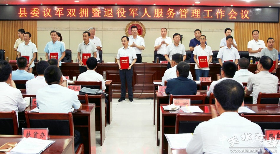 7月30日,中共張家川縣委議軍雙擁暨退役軍人服務管理工作會議召開。會議傳達了習近平總書記有關重要批示和省市委議軍會議精神,表彰獎勵了雙擁先進單位、黨管武裝好書記和優(yōu)秀武裝部長,張家川鎮(zhèn)、劉堡鎮(zhèn)、胡川鎮(zhèn)、平安鄉(xiāng)等4個鄉(xiāng)鎮(zhèn)黨委書記分別作了黨管武裝工作述職,縣委、縣政府與各鄉(xiāng)鎮(zhèn)、各相關部門簽訂了雙擁及民兵整組工作責任書。