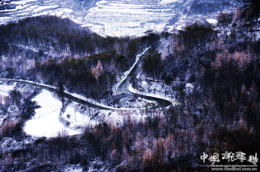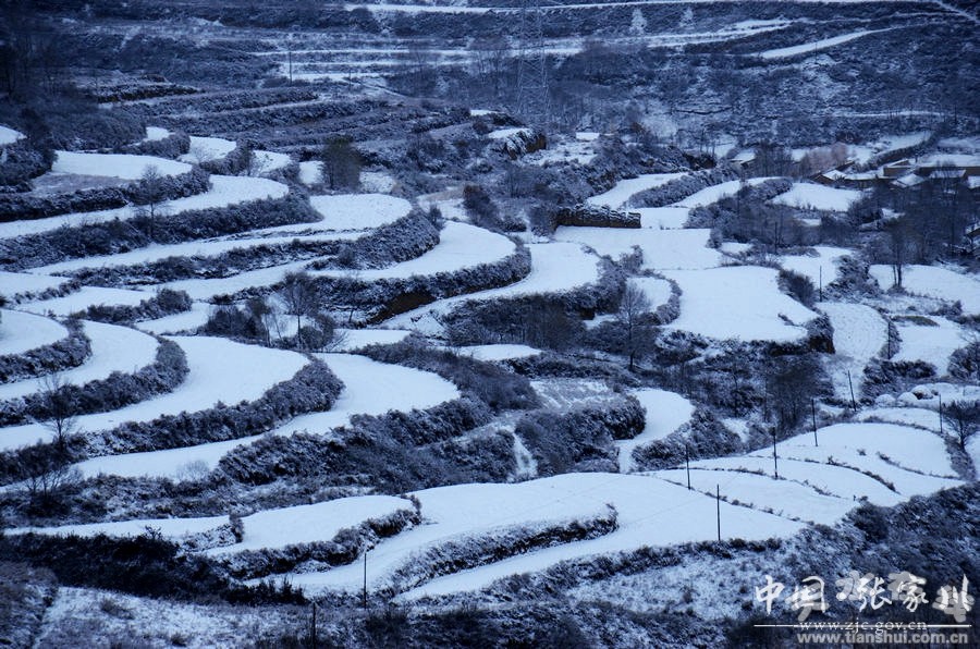 11月5日,張家川迎來(lái)降雪天氣。山川、河流、田野被大雪覆蓋,到處銀裝素裹。張家川境內(nèi)的關(guān)山黑白灰的色彩交相輝映,淡然靜謐,宛如一幅絕妙的水墨丹青畫(huà)卷。