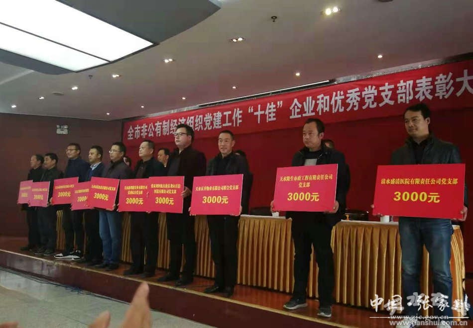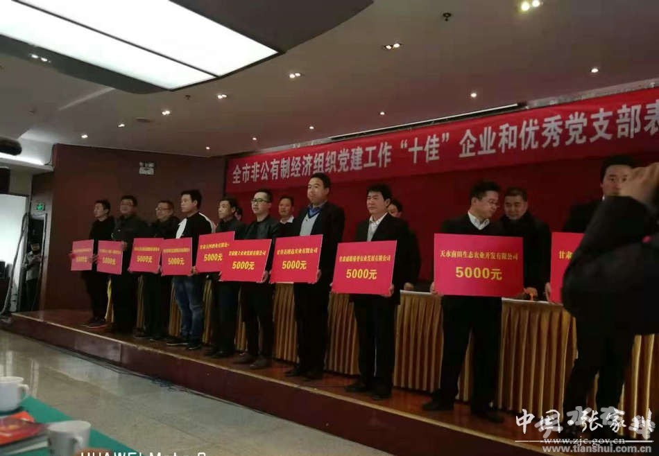 11月9日,全市非公有制經(jīng)濟(jì)組織黨建工作“十佳”企業(yè)和優(yōu)秀黨支部表彰大會(huì)在天水召開。張家川縣建明清真食品有限公司榮獲全市“十佳”非公黨建企業(yè),獎(jiǎng)勵(lì)5000元;天水東升物業(yè)服務(wù)有限公司聯(lián)合黨支部和張家川回族自治縣龍山百信醫(yī)院有限公司黨支部榮獲全市優(yōu)秀黨支部,每家獎(jiǎng)勵(lì)3000元。