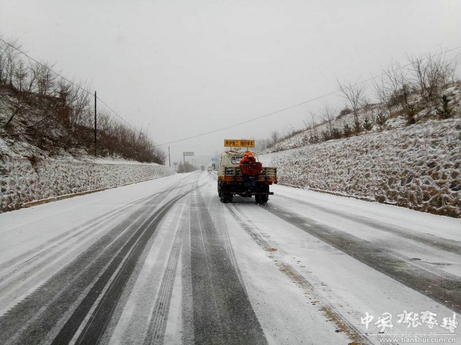 張家川公路管理段第一時間組織人員趕赴S305線莊天公路張棉驛段出動養(yǎng)路工22人、撒鹽車3臺,撒布融雪劑1.5噸、防滑料12立方米,全力保障養(yǎng)護(hù)路段的雨雪天氣安全暢通。