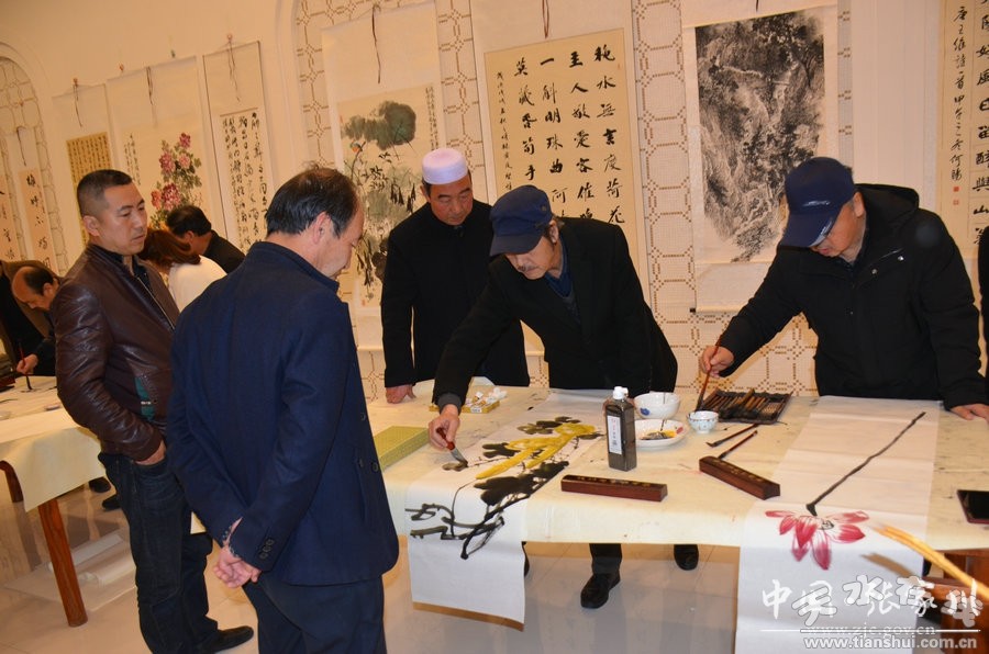 開展儀式結(jié)束后,四縣(區(qū))書畫家們在縣文化交流中心現(xiàn)場揮毫潑墨,切磋交流,開展了書畫交流筆會活動。