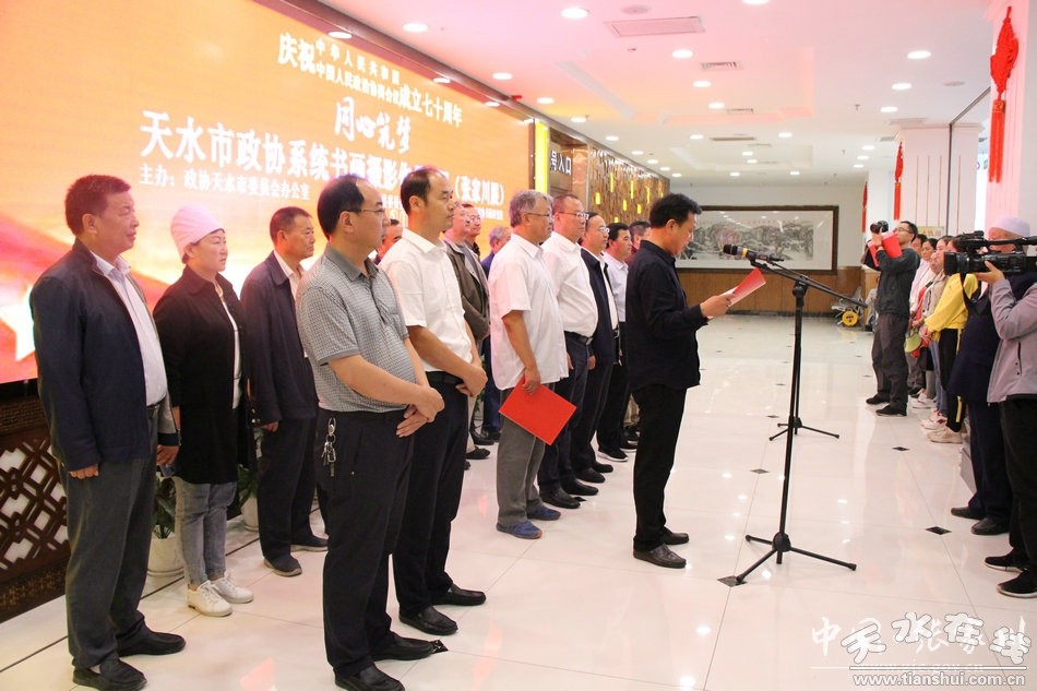 市政協(xié)副主席王振宇,市政協(xié)書畫研究院、市政協(xié)辦、市書協(xié)、美協(xié)、攝影家協(xié)會負責同志及天水市部分書畫藝術家,張家川縣四大組織在家領導及相關單位負責人、參展書畫攝影作品作者和廣大書畫攝影藝術愛好者參加開展儀式。