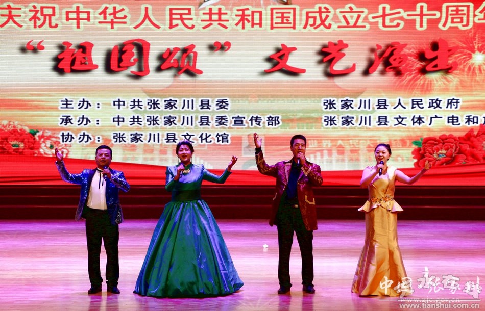 “我們迎著風(fēng)雨向前方,萬(wàn)眾一心挽起臂膀,我們要把親愛(ài)的祖國(guó)變得更加美麗富強(qiáng)……”隨著一曲振奮人心的合唱《走向復(fù)興》旋律響起,張家川縣舉行慶祝新中國(guó)成立70周年“祖國(guó)頌”文藝晚會(huì)拉開(kāi)帷幕。