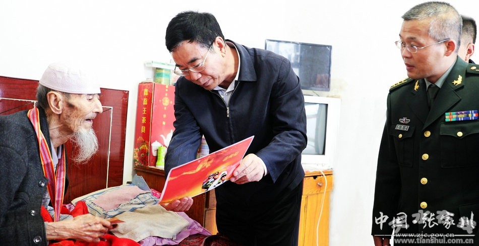 在紀(jì)念中國人民志愿軍抗美援朝出國作戰(zhàn)70周年之際,張家川縣領(lǐng)導(dǎo)陳晰、馬筱寧、關(guān)春生、黨曉軍先后深入龍山、馬關(guān)等地,看望慰問抗美援朝老戰(zhàn)士馬德河、馬萬華、竇萬來、張世杰、鐵良義,送去黨和政府的關(guān)懷問候,并通過他們向全縣廣大老戰(zhàn)士致以崇高敬意和美好祝愿?h委辦、政府辦、縣退役軍人事務(wù)局負(fù)責(zé)同志參加慰問。
