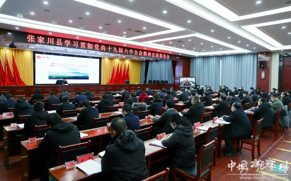 12月31日,張家川縣學(xué)習(xí)貫徹黨的十九屆六中全會精神宣講報告會在行政中心禮堂舉行?h委書記張思佳為全縣黨員干部宣講黨的十九屆六中全會精神?h委副書記、縣長馬創(chuàng)成主持宣講報告會。