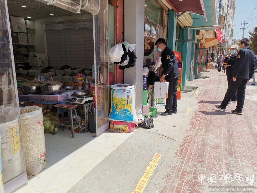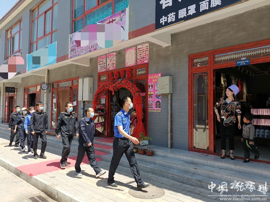 5月7日,記者在龍山鎮(zhèn)看到,街道上整齊有序,灑水車對街道兩側的行道樹依次進行澆水,并沿街道灑水。龍山鎮(zhèn)執(zhí)法隊的執(zhí)法人員依法對亂停亂放的三輪車進行拖離,臨街商鋪的店主配合執(zhí)法人員進行檢查。