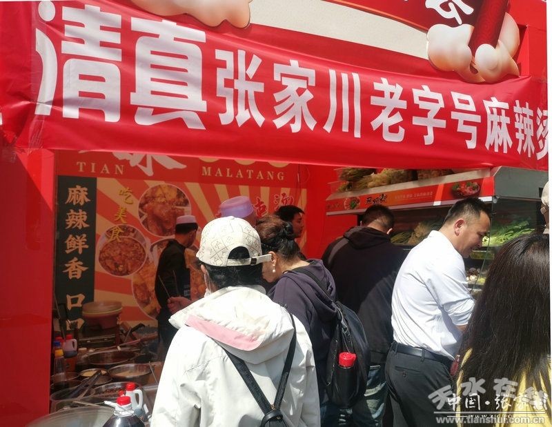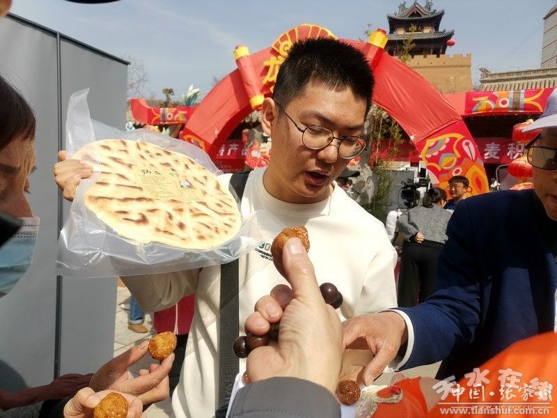 “在水一方”的張家川姑娘手端特色小吃行走在天水古城,色香味俱全的美食加靈動美麗的姑娘,成了最美的風(fēng)景,游客們走著、看著、歡呼著,今天的C位屬于張家川。