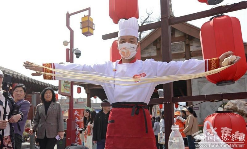 帥氣的“川川”現(xiàn)場支起鍋灶,為游客免費講解張家川·蘭州牛肉拉面制作過程,大家都專心的聽著,手里比劃著拉面的動作,一場有趣且生動的現(xiàn)場教學(xué)課吸引了無數(shù)游客。