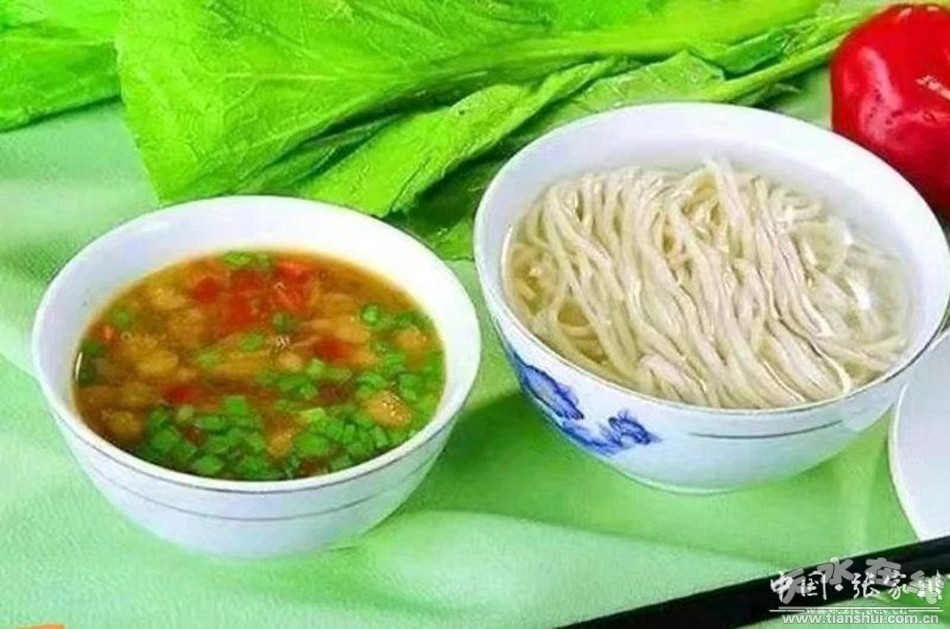 說起漿水拌湯,不得不提及漿水酸菜,在秦隴大地,特別是以秦邑周邊數(shù)縣,鄉(xiāng)鄰都離不開漿水酸菜,現(xiàn)實(shí)的老人更是這樣,尤其是現(xiàn)在人們生活好啦,油腥味重,幾天不吃漿水飯,總感到心內(nèi)不舒服,吃碗漿水拌湯,真會體察到“天朗氣清,惠風(fēng)和暢”的感覺。其實(shí)把面咯嗒用竹筷拌成面索索,下到開水鍋里,待熟后,將熗好的漿水酸菜和入,味調(diào)合適后,可入碗上桌,那味道可口可信,不妨你可照以上方法試試,品一品,我肯定,個(gè)中滋味上心頭,收效不少。