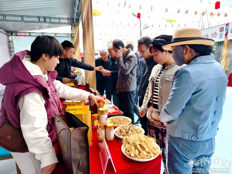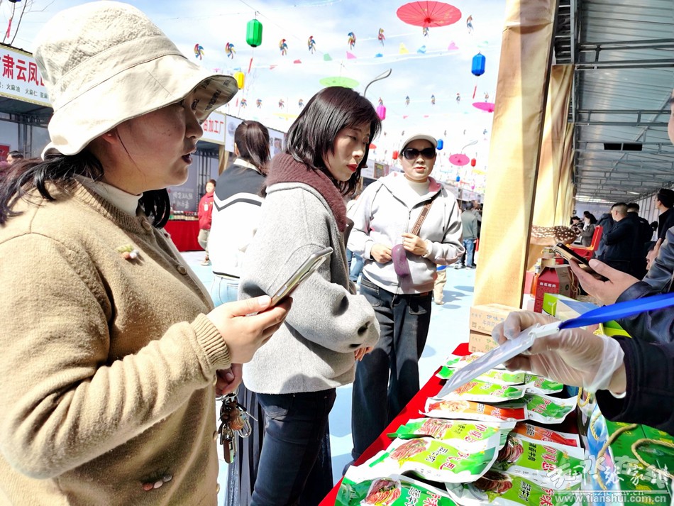 4月6日,在張家川縣易德廣場(chǎng)舉行的以“品天水麻辣燙游絲路張家川”為主題的張家川縣特色美食文化系列活動(dòng)現(xiàn)場(chǎng),只見人頭攢動(dòng),熙熙攘攘,各展位桌上,擺著琳瑯滿目的特色農(nóng)產(chǎn)品吸引眾多市民和游客駐足了解,人們圍在桌前詢問(wèn)價(jià)格、挑選產(chǎn)品、掃碼支付,場(chǎng)面十分熱鬧。