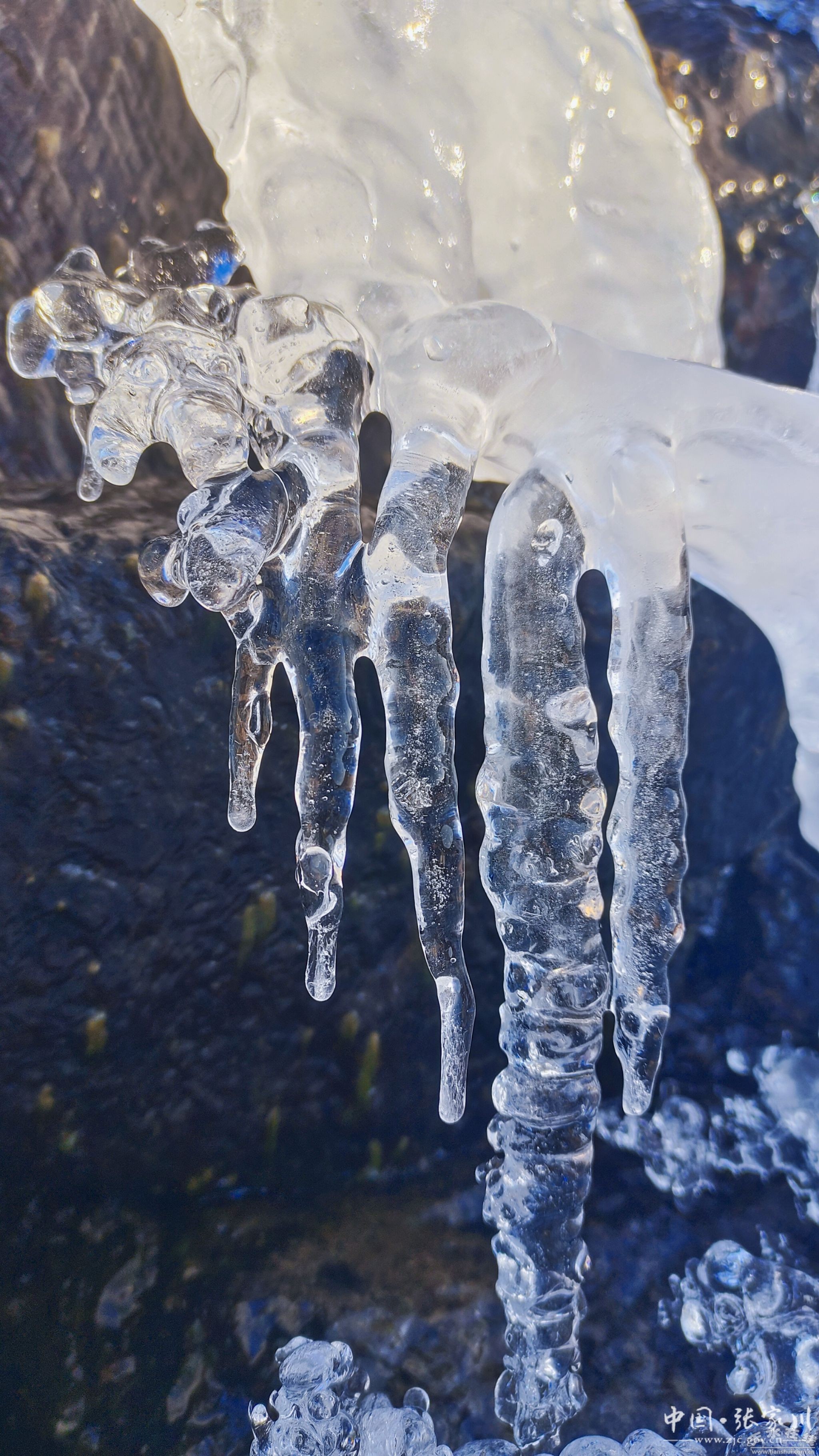 遠近高低各不同。當水流在寒冷的天氣中凝固,原本的潺潺流水化作了晶瑩剔透的冰瀑,它們或懸掛于峭壁之上,或鋪展于巖石之間,宛如大自然精心雕琢的藝術(shù)品。在陽光的照耀下,冰瀑閃爍著耀眼的光芒,每一面都像是被精心打磨過的鏡子,反射出五彩斑斕的光影。有的冰瀑如簾幕般垂直懸掛,仿佛能隔絕塵世的喧囂;有的則如波浪般起伏,展現(xiàn)出一種動態(tài)的美感。而當風輕輕吹過,冰瀑表面會泛起層層細膩的波紋,更添一份神秘與靈動。