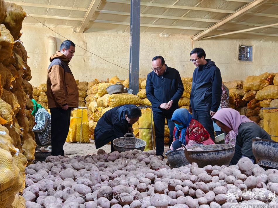 縣農(nóng)業(yè)農(nóng)村局種子管理站站長馬青杰說:“國家科技特派團(tuán)的馬鈴薯產(chǎn)業(yè)組到張家川以后全產(chǎn)業(yè)鏈打造馬鈴薯產(chǎn)業(yè),從馬鈴薯種子的脫毒、擴(kuò)繁開始打造了劉家村的馬鈴薯種子生產(chǎn)基地,從組排樓、光照室、馬鈴薯儲藏窖、原原種儲藏庫等方面著手,引進(jìn)了一家企業(yè),在特派團(tuán)的指導(dǎo)下帶動當(dāng)?shù)?30多家企業(yè)開始種植馬鈴薯。從22年到24年累計(jì)有500多家合作社參與種植馬鈴薯,特派團(tuán)全程進(jìn)行指導(dǎo),從傳統(tǒng)的耕作上升為全程機(jī)械化,馬鈴薯的產(chǎn)量從之前的平均不足1.5噸到現(xiàn)在好多地方達(dá)到了3噸以上,最高的達(dá)到5噸。科技特派團(tuán)還為咱們爭取項(xiàng)目,在項(xiàng)目的帶動下指導(dǎo)建立了龍山鎮(zhèn)的淀粉廠,在馬鈴薯的賣難問題上也得到了解決!