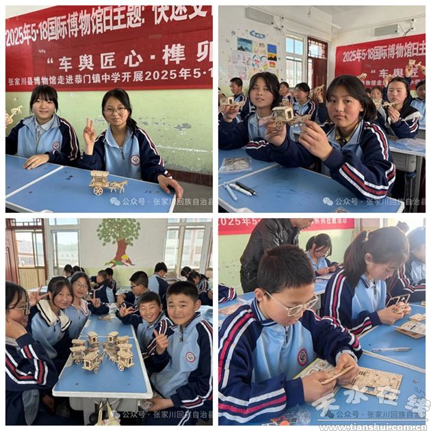 為弘揚中華優(yōu)秀傳統(tǒng)文化,激發(fā)青少年對歷史文化的探索熱情。在2025年5·18 國際博物館日來臨之際,5月9日,張家川縣博物館走進恭門鎮(zhèn)中學(xué)精心組織開展了以“車輿匠心·榫卯智慧”為主題的古風(fēng)馬車拼裝社教活動,帶領(lǐng)同學(xué)們穿越千年,感受古代車輿文化的魅力與榫卯技藝的精妙!