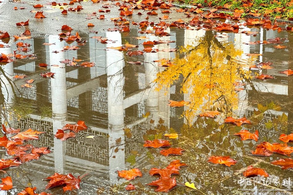 雨絲輕拂過金黃的銀杏,將細(xì)碎的光影揉進(jìn)濕漉漉的馬路;又掠過火紅的楓樹,讓一片片熱情的葉瓣成為小城里跳動的火焰。湖面上悠哉的野鴨更為秋日添上幾分恬靜。