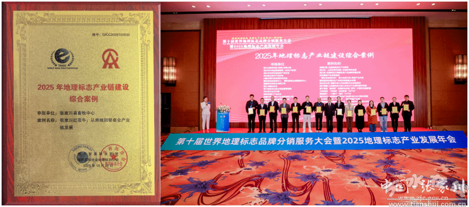 10月20日至21日,第十屆世界地理標志品牌分銷服務(wù)大會暨2025地理標志產(chǎn)業(yè)發(fā)展年會在北京召開!皬埣掖t花牛”作為國家地理標志產(chǎn)品受邀參會,憑借全產(chǎn)業(yè)鏈發(fā)展優(yōu)勢榮獲“2025年地理標志產(chǎn)業(yè)鏈建設(shè)綜合案例”,贏得廣泛關(guān)注。