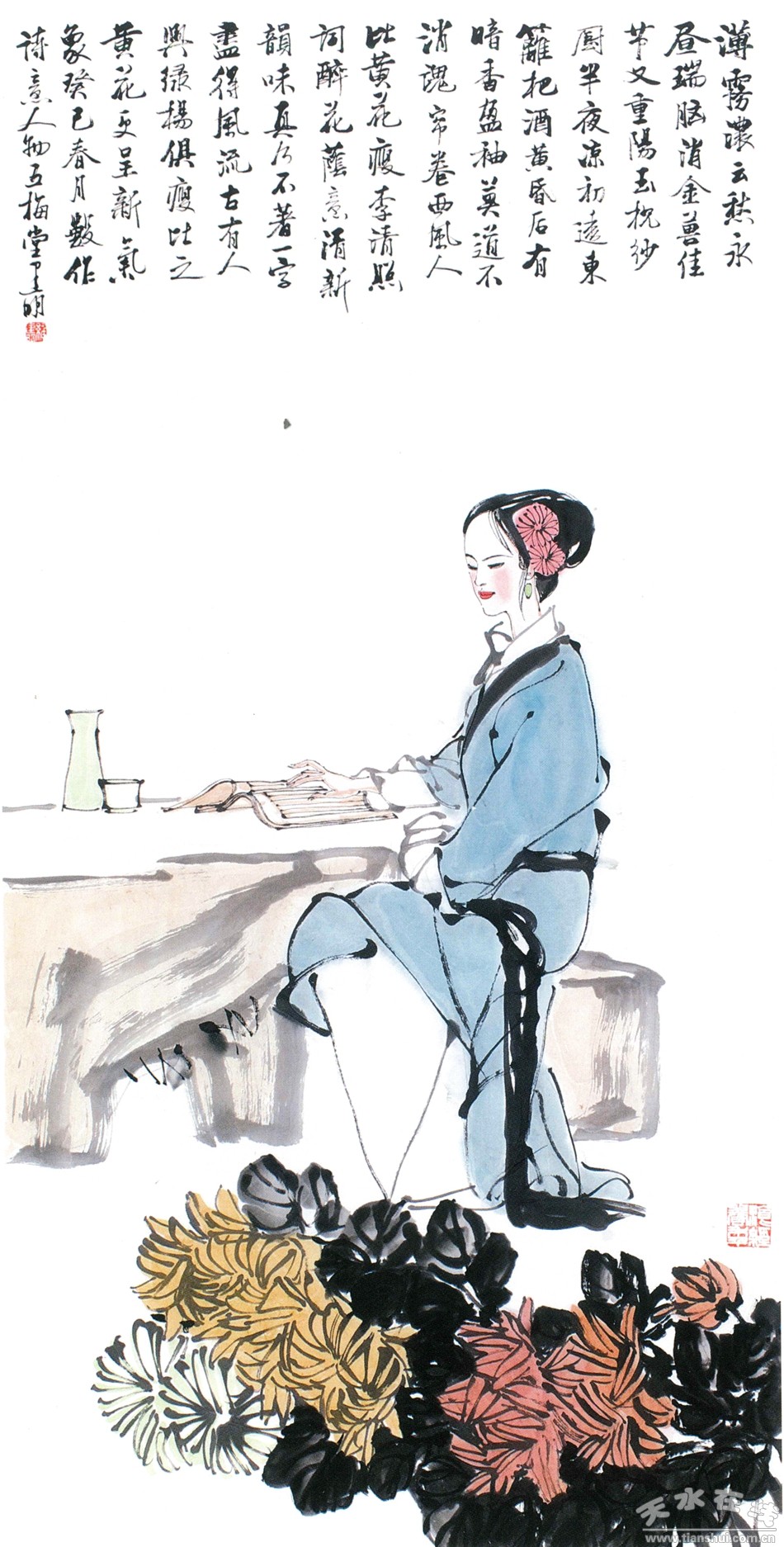 緱建明是詩、文、書、畫全面修養(yǎng)的藝術(shù)家,工于山水、人物、花鳥,深入研習(xí)魏晉、宋、元、明、清諸家,是近現(xiàn)代人物畫、山水畫、花鳥畫中傳承創(chuàng)新有所建樹的畫家之一。他推崇詩、書、畫一體,注重畫外修養(yǎng),吸收古今長處,講求筆情墨韻,構(gòu)圖守白留黑,創(chuàng)造出時代感的新意境。他將精通的人物、山水、花鳥、書法的技法互為通融,使畫作更具表現(xiàn)力。畫風(fēng)瀟灑靈秀,線條飄逸、挺勁、大氣,出神入化,表現(xiàn)物像惟妙惟肖。