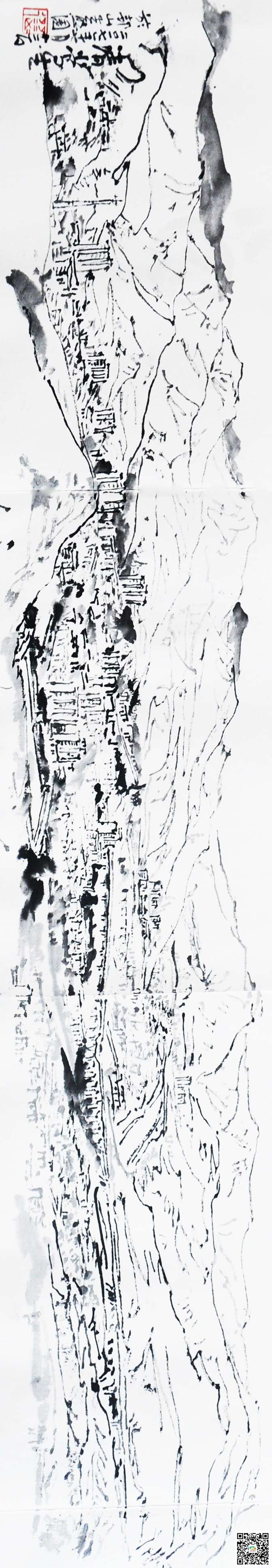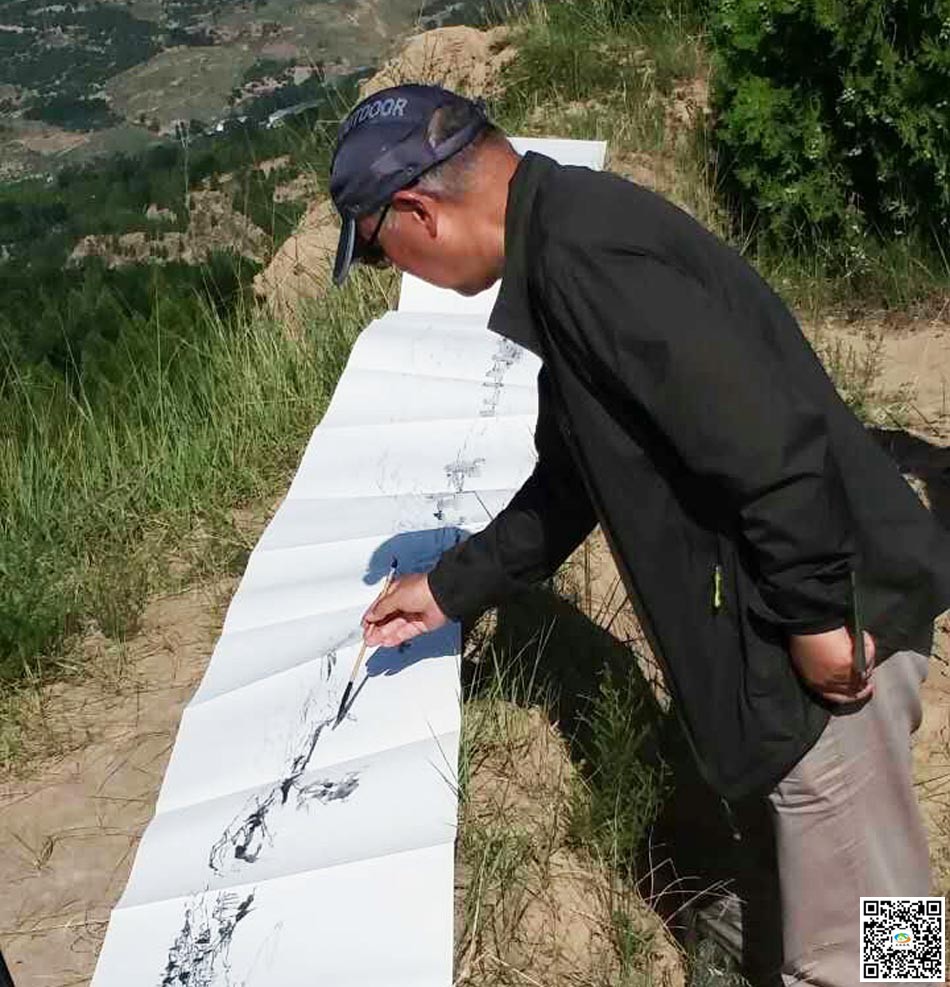 天水在線7月15日報道 7月11日至15日,天水籍著名書畫家毛選選先生回到家鄉(xiāng),在天水日報社原總編輯倪元存的陪同下,頂烈日、冒酷暑、爬山涉水,先后走進秦州區(qū)皇城堡、麥積區(qū)社棠鎮(zhèn)半山村、清水縣紅崖觀進行水墨寫生。7月15日上午來到天水在線網站落下最后一筆,完成了長達6米的天水長卷。