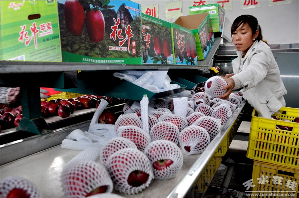 天水蘋果栽培區(qū)位于全市70個(gè)重點(diǎn)鄉(xiāng)鎮(zhèn),分布在渭河中上游、葫蘆河流域,以及藉河、散度河、牛頭河流域的河谷川道和淺山區(qū),種植區(qū)海拔1000-1700米左右。在栽培過程中,選用元帥系3-5代優(yōu)良品種的俄矮2號(hào)、天汪1號(hào)首紅、阿斯、超紅等,通過培肥土壤,實(shí)施果園種草覆草和覆蓋黑地膜,加強(qiáng)果園綜合管理和嚴(yán)格的花果管理,果實(shí)套袋等先進(jìn)實(shí)用的技術(shù),加之特殊的地理生態(tài)環(huán)境,生產(chǎn)出形正、個(gè)大、色艷、味美的“花!碧O果。果實(shí)上市,適逢中秋節(jié)和國慶節(jié),大宗紅富士蘋果還未成熟,在市場(chǎng)競(jìng)爭(zhēng)中優(yōu)勢(shì)明顯。