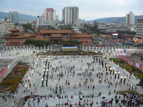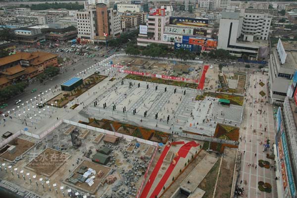 投資1300萬元、分兩期實(shí)施改造的市中心廣場(chǎng),經(jīng)過4個(gè)月的改造后,于2006年9月6日完成局部改造工程,正式對(duì)市民開放。改造完工的廣場(chǎng)占地2.43萬平方米,安裝景觀燈184盞,草坪燈77盞,地埋燈114盞,射燈18套,圓形樹池80個(gè),各式花壇24個(gè)。