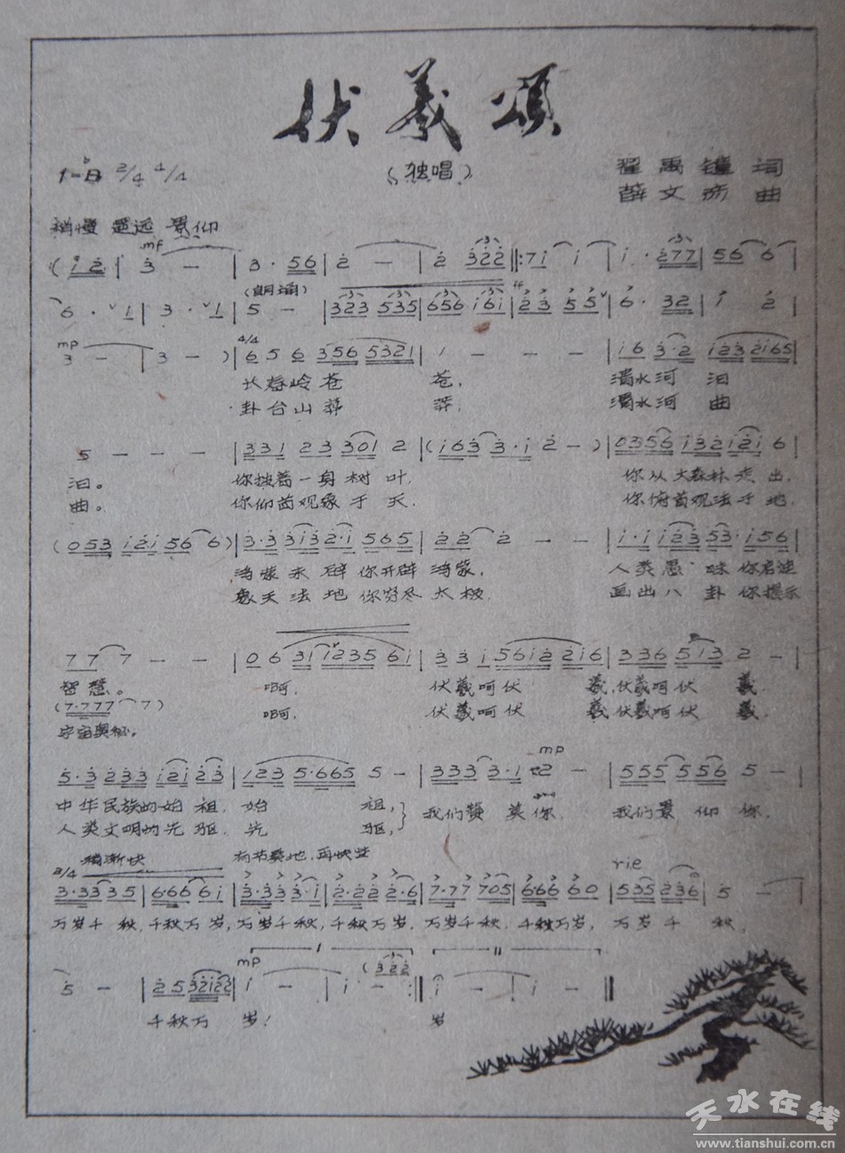 ▲1988年創(chuàng)作的伏羲頌詞曲