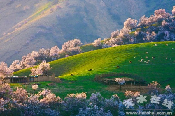 新疆杏花溝位于新疆伊犁新源縣吐?tīng)柛l(xiāng),是一片中世紀(jì)遺留最大的原始野杏林,集中分布于鞏及斯河北岸,占地3萬(wàn)多畝。
