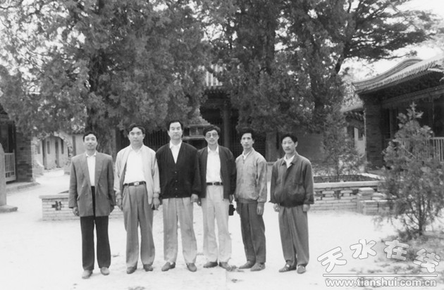 (1990年在伏羲廟留影,身后為當(dāng)時伏羲廟舊貌)