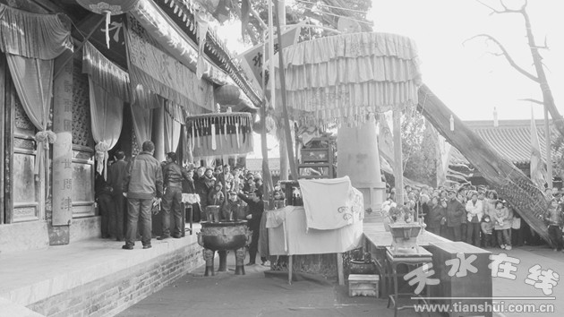 伏羲廟的建成使官方每年對伏羲的祭祀活動有了重要的祭祀場所。據(jù)劉雁翔先生所著《伏羲廟誌》中所考證,漢代,祭祀在立春之日舉行。唐玄宗天寶六年(747年)確定每年春秋季二時祭祀三皇。宋、金代明確在仲夏、仲秋,即每年的二月、八月祭祀。元代改定祭日為三月三日、九月九日。明初沿襲元制,將歷代帝王的祭祀改為仲春、仲秋。卦臺山伏羲廟和秦州伏羲廟的祭祀日期被確定為每年仲春、仲秋的上丙日,即二月三日和八月三日。清代祭祀程序禮儀較明代簡略。民國則更加簡略。雖顯簡略,但祭祀活動仍然神圣嚴(yán)肅。祭祀活動中的祭祀程序、祭品、樂舞、祭祀樂章、祭文、告文、榜文等均有一定的規(guī)范和嚴(yán)格的要求。尤其明嘉靖二年(1523年),伏羲廟新建完工后,為體現(xiàn)對先皇的崇敬之情,明廷禮部向秦州特別頒發(fā)《太昊廟祭文》,作為官祭時的標(biāo)準(zhǔn)祝詞,代表朝廷致祭。清代廢棄官祭,但民間祭祀活動一直沒有停止過。新中國成立以后,官方的祭祀活動從1988年天水市人民政府恢復(fù)對伏羲的公祭活動開始,將每年的農(nóng)歷五月十三日,傳說中龍的生日定為祭祀之日。1989年開始,天水市人民政府正式舉辦一年一度的伏羲文化節(jié),2000年將伏羲文化節(jié)改為中國·天水伏羲文化旅游節(jié)。祭祀的儀式更加程序化、規(guī)范化,祭祀的規(guī)格也隨之不斷提升。隨著節(jié)會在國內(nèi)和港澳臺影響力的日益擴大,祭祀活動由國務(wù)院港澳臺辦公室、國務(wù)院僑務(wù)辦公室、甘肅省人民政府主辦,天水市人民政府具體承辦。在天水,民間對伏羲的祭祀活動從未斷絕。相傳成立于明代,由伏羲城的紳民組成的“上元會”,從清代、民國沿襲不斷,成為主持民間祭祀的總代理。解放初即自行解散。改革開放以后,國內(nèi)一些民風(fēng)、民俗重大活動逐步得以恢復(fù)。1988年6月26日,“上元會”在恢復(fù)伏羲祭祀時重組,在每年的農(nóng)歷正月十六日,相傳為伏羲生日這一天,組織天水市民眾自發(fā)集會,舉行祭奠“人宗爺”的民間祭祀活動。