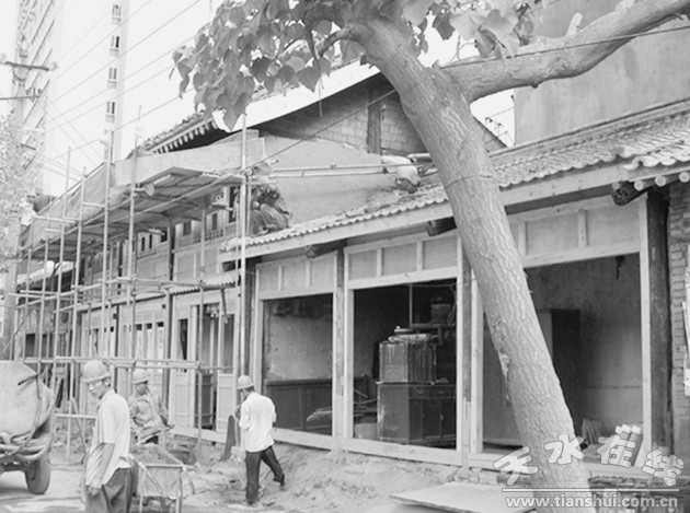 2005年底開(kāi)始,在對(duì)伏羲城內(nèi)東部北側(cè)部分民居進(jìn)行先期改造、取得施工經(jīng)驗(yàn)的基礎(chǔ)上,伏羲城民居保護(hù)項(xiàng)目全面展開(kāi)。首先對(duì)伏羲廟以東縱深住戶和以西臨街住戶進(jìn)行搬遷,對(duì)部分住房面積小、生活困難、符合廉租房政策的拆遷戶提供廉租房進(jìn)行安置。對(duì)征用的企業(yè)土地現(xiàn)場(chǎng)勘測(cè),核定用地面積和界限,由市城投集團(tuán)公司與企業(yè)簽訂協(xié)議,先占用建設(shè),待土地掛牌后按照掛牌價(jià)進(jìn)行補(bǔ)償。在伏羲城民居院落的施工中,嚴(yán)格按照設(shè)計(jì)要求,既保持傳統(tǒng),又達(dá)到功能完善,院落之間各自獨(dú)立,又相互聯(lián)系。既統(tǒng)一風(fēng)格,又各具特色。伏羲城北側(cè)建筑,主要以保護(hù)修繕為主,盡最大可能保留原建筑風(fēng)貌,施工前,每一棟房屋都進(jìn)行詳細(xì)的鑒定和評(píng)估。對(duì)大部分有保留價(jià)值且質(zhì)量狀態(tài)較好的進(jìn)行原址維修,有保留價(jià)值但已成為危房的幾座建筑落架大修后恢復(fù)原狀,對(duì)近年來(lái)修建的與伏羲城建筑風(fēng)格不協(xié)調(diào)的現(xiàn)代建筑予以拆除重建,風(fēng)格風(fēng)貌必須符合建筑設(shè)計(jì)要求。2005年,拆遷面積達(dá)2659平方米,對(duì)28座民居院落進(jìn)行了保護(hù)性修繕和周邊環(huán)境整治。完成伏羲廟以東步行街兩側(cè)民居修繕7棟,新建11棟,完成地面鋪設(shè)和水、暖、電的安裝,建筑面積1800平米。2006年,伏羲路兩側(cè)臨街的10個(gè)單位、154戶住戶全部搬遷安置完畢。完成10個(gè)古民居院落、90戶居民的搬遷,伏羲廟以東18棟民居、1500平米的新建和4個(gè)院落的整體修繕。到2007年6月底,先后40戶居民被搬遷。廟西區(qū)修繕進(jìn)入最后階段,施工中仍采用半落架,局部整修及環(huán)境治理的方式進(jìn)行,古民居修復(fù)保護(hù)工程中拆遷面積達(dá)2659平方米,維修面積600平方米,新建仿古商鋪550平方米,保護(hù)性修繕和周邊環(huán)境整治28座民居院落,達(dá)到了修舊如舊、風(fēng)貌一致的實(shí)際效果。伏羲廟以東雙橋路以西,伏羲路兩側(cè)伏羲路步行街兩側(cè)古民居為主的建筑風(fēng)格街景全面形成,標(biāo)志著天水伏羲城古民居修復(fù)改造建設(shè)工程圓滿完成。