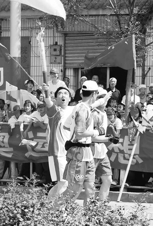 那一刻,在擁擠的人群中,我看見一對70多歲的老人,他們身著唐裝,緊緊地依偎在一起,飽經(jīng)風(fēng)霜的臉上,記載著他們經(jīng)歷過的人間滄桑。兩位老人雙頰流著淚水,手中揮動著五星紅旗?吹竭@一幕,我不禁想起在舊中國劉長春孤身一人參加世界奧運會的那一幕;不禁想起1964年,中國獲得新中國第一個世界冠軍,取得第26屆世界乒乓球錦標(biāo)賽冠軍的那一刻;想起1971年,第26屆聯(lián)合國大會決定恢復(fù)中華人民共和國席位,中國代表昂首挺胸進(jìn)入聯(lián)合國的那一瞬間。我仿佛又回到當(dāng)年守在電視機旁,焦急地等待國際奧委會主席薩姆蘭奇在大會上宣布中國舉辦第28屆夏季奧運會時那激動人心的一刻。我想,這兩位老人正是看到熊熊燃燒的火炬,深深體會到中國人站起來的自豪和驕傲,他們看到,正是由于中國的強大,奧林匹克運動火炬終于在中國大地上到處傳遞,而流出了熱淚。