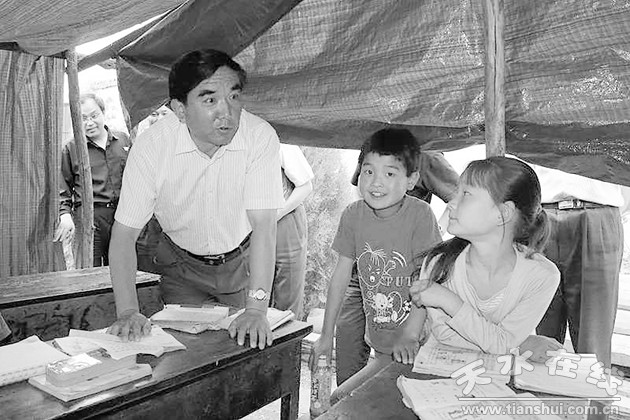 (現(xiàn)場了解災(zāi)后學(xué)生上課情況)