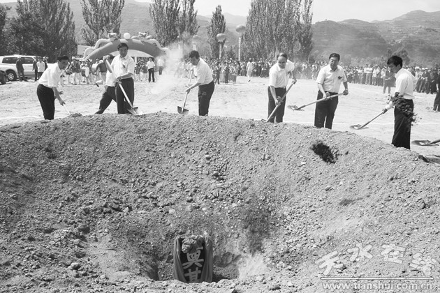 6月19日,雨過天晴,風(fēng)和日麗。市政協(xié)援建王家門小學(xué)啟動儀式隆重舉行。這一天,距離地震發(fā)生僅僅過去37天。這是震后全市第一所開始重建的小學(xué),是全體市政協(xié)委員向受災(zāi)學(xué)生獻(xiàn)出的一份充滿愛心的禮物。市委、市人大常委會、市政府主要領(lǐng)導(dǎo),市政協(xié)機(jī)關(guān)全體干部職工,部分市政協(xié)委員,市直有關(guān)部門負(fù)責(zé)人,秦州區(qū)委、區(qū)政府、區(qū)政協(xié)負(fù)責(zé)同志,藉口鎮(zhèn)和王家門村全體村民參加啟動儀式。在啟動儀式上,為了充分體現(xiàn)群眾意愿,由王家門小學(xué)全體師生、王家門村全體村民采用現(xiàn)場投豆(黃豆)表決的方式,從設(shè)計(jì)院設(shè)計(jì)的兩套建設(shè)方案中選擇一套進(jìn)行施工建設(shè),當(dāng)現(xiàn)場宣布按照全體村民和師生自主選擇的設(shè)計(jì)方案進(jìn)行建設(shè)時(shí),大家報(bào)以熱烈的掌聲。